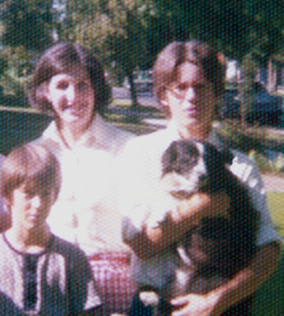 Me and my mom, with my little brother Drew and our family dog, Gizzard.